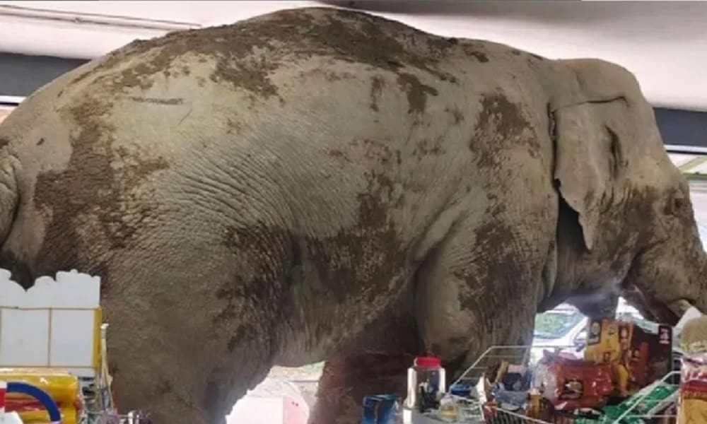 فيل ضخم يقتحم متجرًا في تايلاند لتناول الطعام