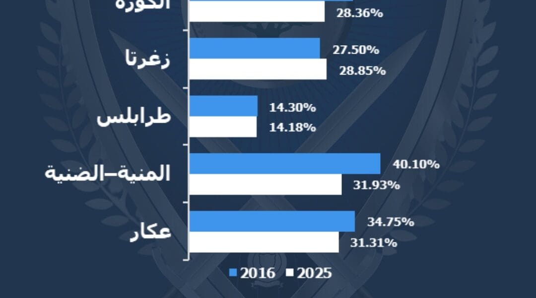 نشرت وزارة الداخلية مقارنة لنسب الاقتراع في محافظتي لبنان الشمالي وعكار حتى الساعة ٣ بعد الظهر بين العام ٢٠١٦ واليوم.