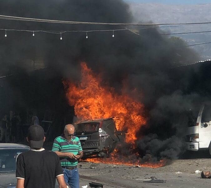 في خرق جديد لاتفاق وقف النار شن الطيران الحربي الإسرائيلي غارة على سيارة في منطقة العيرونية – طرابلس.