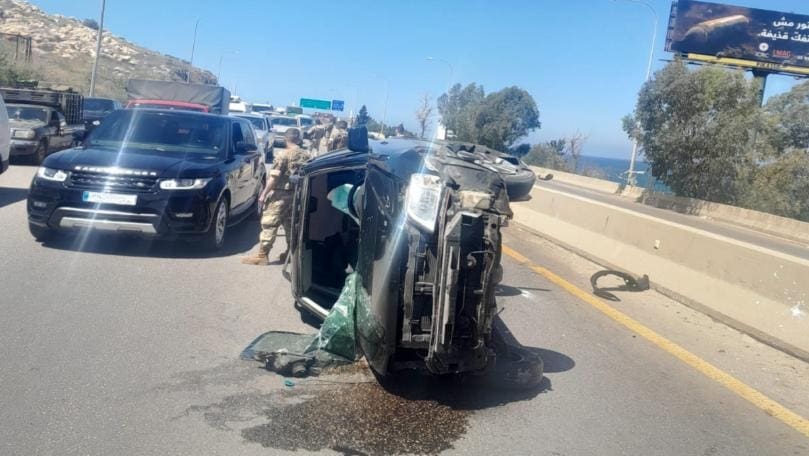 لبنان..حادث سير على اوتوستراد السعديات: انقلاب سيارة والأضرار مادية