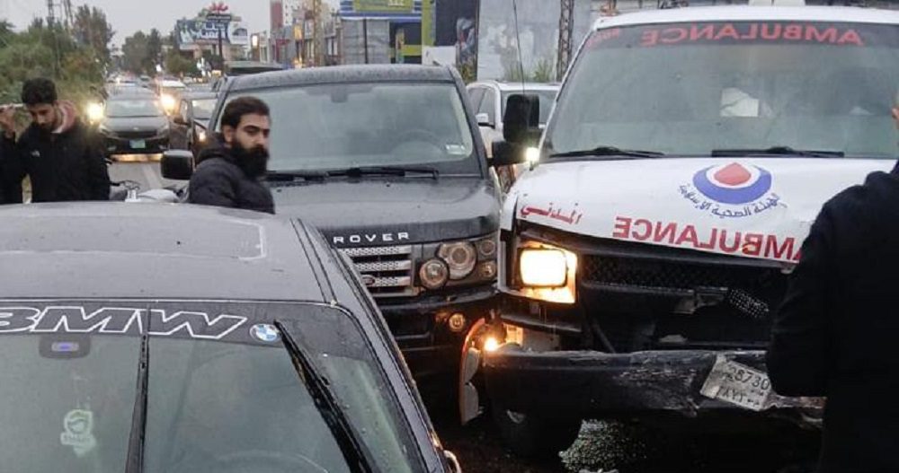 وقع حادث سير بين 4 سيارات، من بينها سيارة إسعاف على الطريق العام في شرق صور.