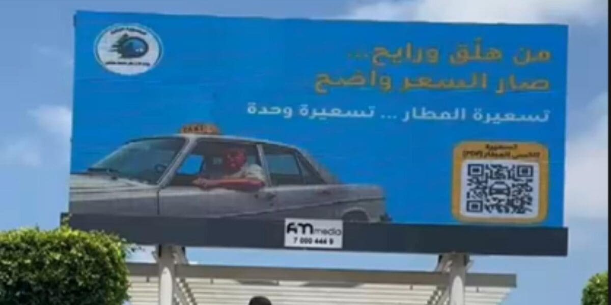 انتشرت مؤخراً لافتات قرب مطار بيروت الدولي ضمن حملة نظمتها وزارة الأشغال العامة والنقل، تحمل شعار “تسعيرة المطار… تسعيرة وحدة”، إشارة إلى أن تعرفة أجرة سيارات التاكسي من المطار تُطبّق بنظام تعرفة موحّدة.