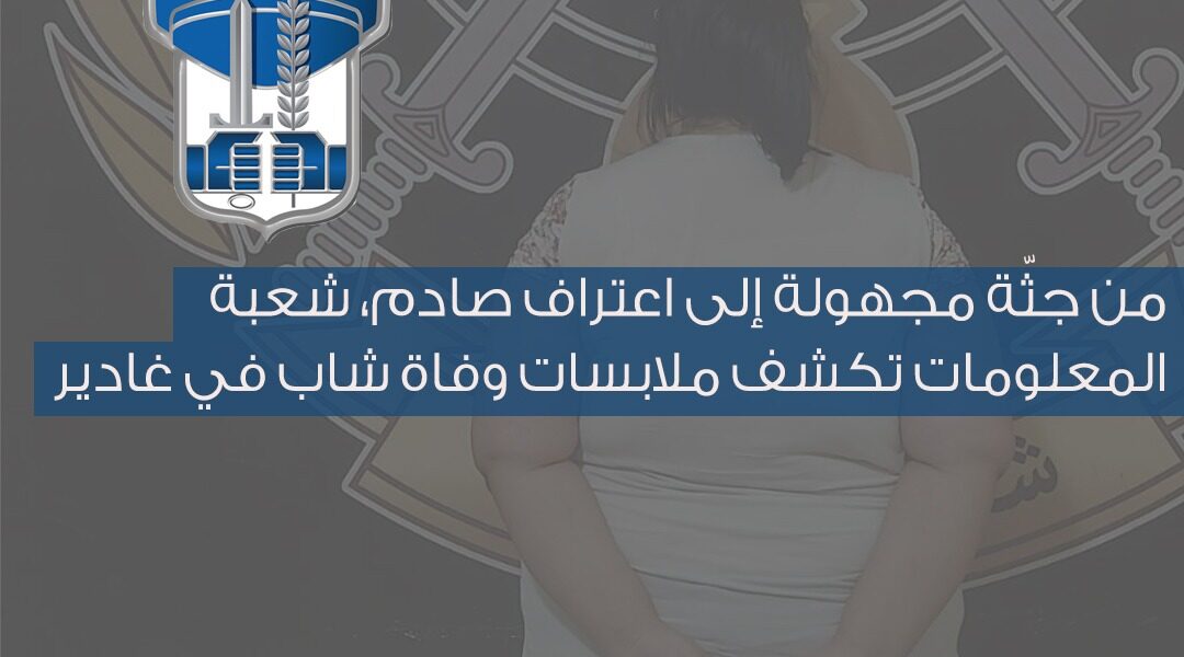 بتاريخ 14-11-2025، عُثِرَ في بلدة غادير – كسروان على جثّة شاب مجهول الهوية، في العقد الثّاني من العمر، ممدّدة على الأرض. وبنتيجة كشف الطبيب الشّرعي على الجثّة، تبيّن أنّ الوفاة ناتجة عن عمليّة خنق.