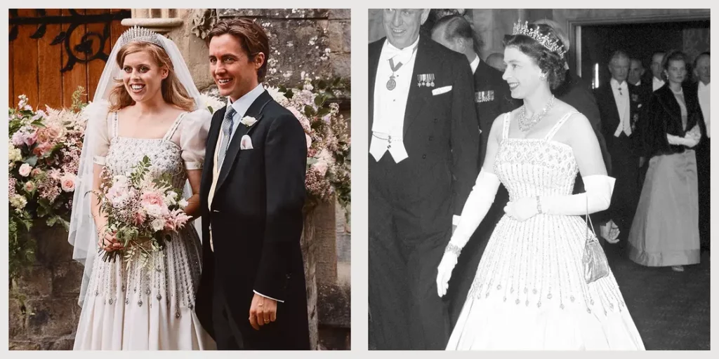 وأوضحت “رويال كولّكنش تراست”، المسؤولة عن الحفاظ على التراث الملكي البريطاني، أن نصف المعروضات سيُعرض للجمهور لأول مرة، بما في ذلك تصميمات مصمم أزياء الملكة نورمان هارتنيل، وفستان زفافها، وفستانها خلال حفل تنصيبها عام 1953، وفستان أخضر ارتدته في مأدبة على شرف الرئيس الأميركي دوايت أيزنهاور عام 1957.