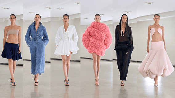 تنوّعت الإطلالات بين فساتين شفافة تُبرز ملامح الجسد بخفة وأناقة، وأخرى أكثر تحرراً، تُعيد تعريف الصورة الظلية عبر قصّات متدفقة ومعلّقة من نقاط غير متوقعة. هناك توترٌ جميل بين ما يُكشف وما يُخفى، بين التكوين والفراغ، في حوار بصري متقن يعبّر عن فلسفة الدار في السعي إلى توازن بين الماضي والحاضر.