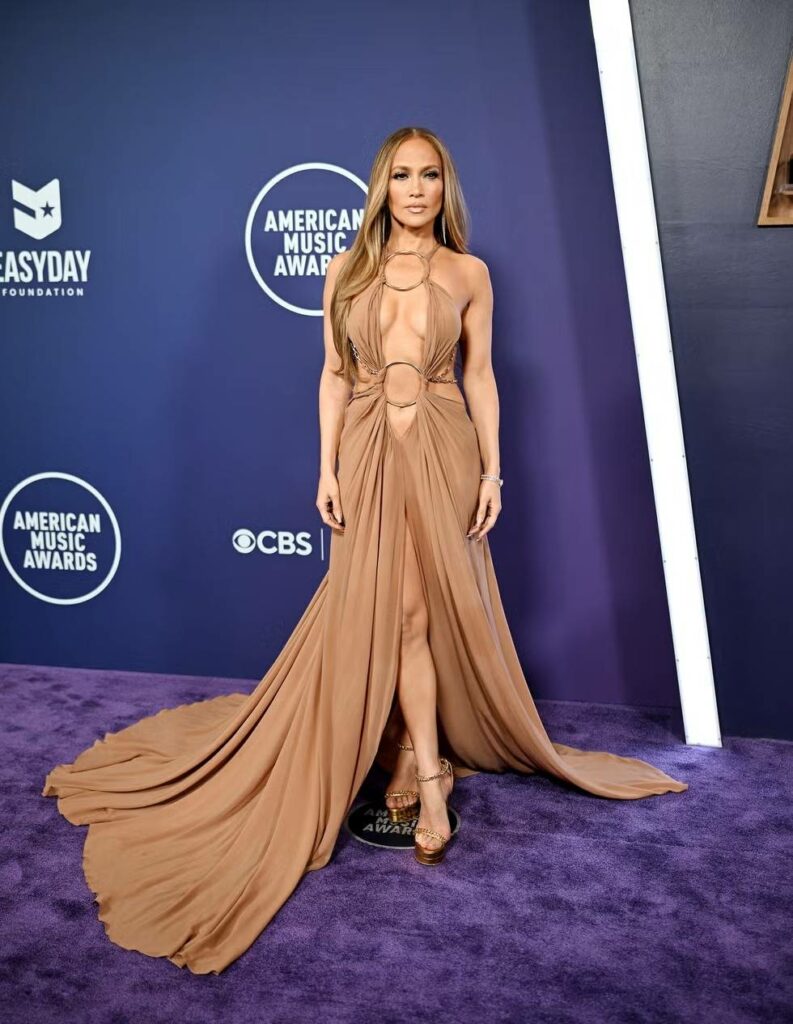 في حفل توزيع جوائز الموسيقى الأميركية، أكمَلت لوبيز إطلالتها بفستان بيج فاتح من Defaïence، مع مجوهرات “تشانس” من الذهب عيار 18 قيراطاً وحجر الهاوليت والماس، لتجسد طاقة نيويورك النابضة بالحياة. - إيرينا شايك – مجموعة “مونلايت”