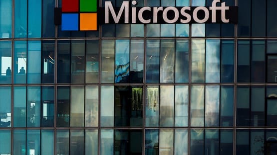 شعار شركة مايكروسوفت خارج أحد مكاتبها (رويترز)