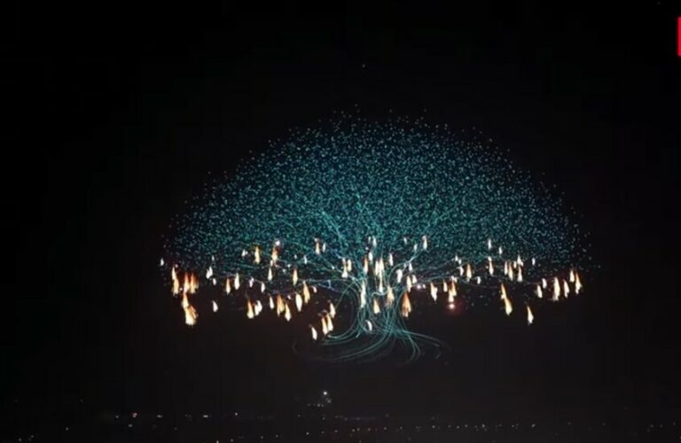 خلال العرض، رسمت الطائرات في السماء لوحات تفاعلية ثلاثية الأبعاد، تضمنت زهرة اللوتس الشهيرة في الثقافة الصينية، وشكّلت شجرة عملاقة تتساقط من أغصانها شعلات الألعاب النارية، كما ظهر مجسم ثلاثي الأبعاد لسور الصين العظيم، ما أضفى لمسة ساحرة على الحدث وجعل الجمهور في حالة دهشة مستمرة.
