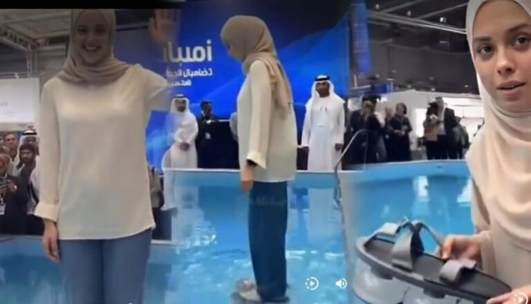 شهدت منصات التواصل الاجتماعي تداول واسع لمقطع فيديو مثير للجدل ظهرت فيه فتاة تمشي على سطح الماء باستخدام حذاء مبتكر يُزعم أنه قادر على دعم وزن الجسم فوق السوائل، ما أثار اهتمام المتابعين حول العالم، وأدى إلى نشر آلاف التعليقات بين من اعتبره إنجازاً تقنياً ومن شكك في صحته.