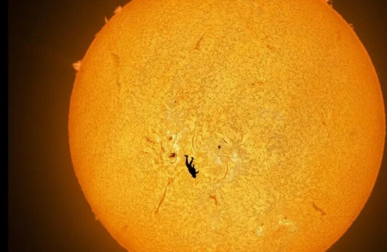 نجح مصور الفضاء أندرو مكارثي في التقاط صورة نادرة للشمس يظهر فيها مظلي يسقط من السماء، لتنتج صورة مذهلة يظهر فيها الإنسان كظل أمام سطح الشمس الملتهب