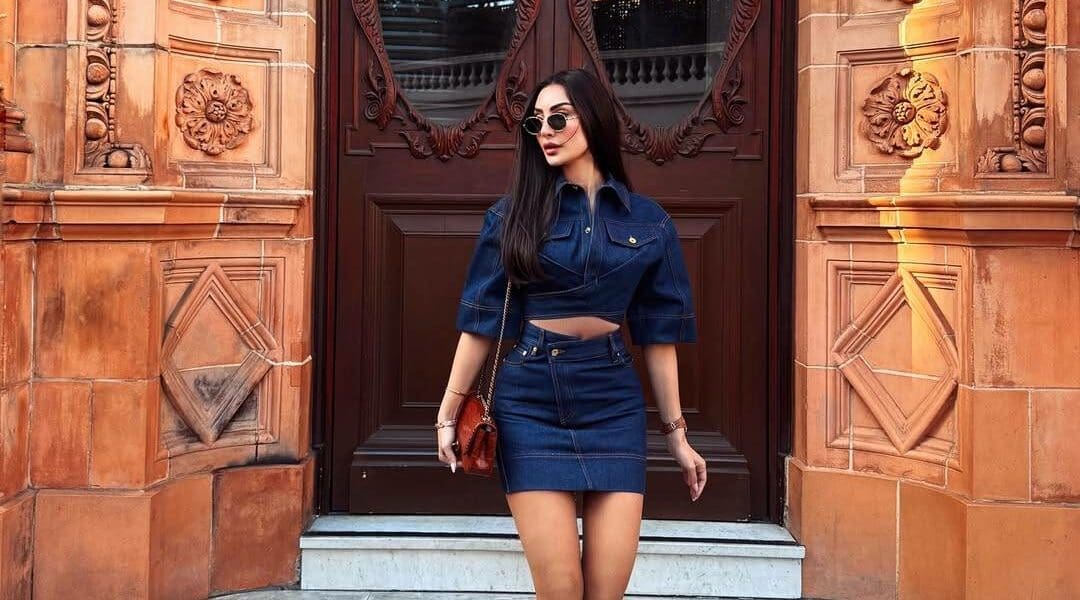 في هذه الإطلالة، اختارت نور جاكيت قصير كروب باللون الكحلي، والذي تم تنسيقه بذكاء مع تنورة قصيرة وضيقة من نفس اللون، وكلاهما من تصميم علامة “جاكوموس” الشهيرة بتقديم تصاميم جريئة ومينيمالية. وقد منح تنسيق الدنيم هذا الإطلالة توازناً بين الجرأة والنعومة، وجعل قوام نور الغندور يبدو أكثر أناقة وعصرية.
