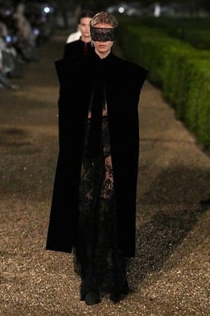 برزت الفساتين المخملية القرمزية والسوداء، إلى جانب السترات العسكرية والمعاطف المهيبة، فيما ظهرت قطع استثنائية مستوحاة من زي المصارعين الرومان بتطريزات بصرية تُشبه الدروع، مما يمنح التصاميم بُعدًا أسطورياً.