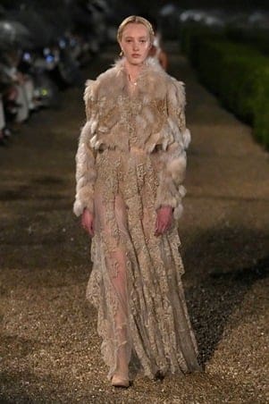 كيوري استعانت في هذا العرض بـمشغل “تيريلي” الشهير، الذي له باع طويل في تصميم الأزياء المسرحية والسينمائية، ما أضفى على المجموعة طابعًا مسرحيًا غنيًا بالحس الدرامي. واستلهمت تصاميمها من فصول تاريخية ممتدة من روما القديمة إلى عصر النهضة، حيث اجتمعت الأنوثة الرقيقة مع الصرامة العسكرية في تناغم فني يجمع بين النعومة والقوة.