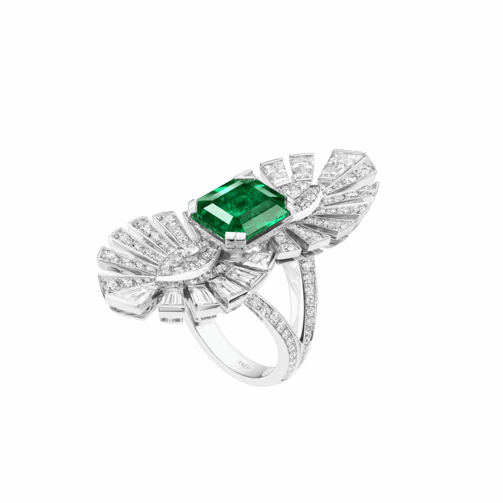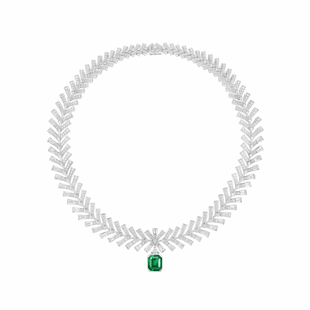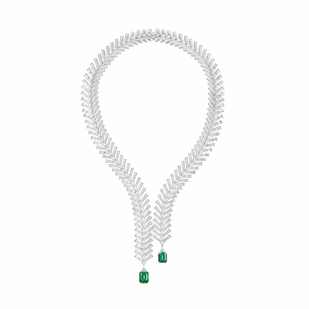 Bright Vitality: مستوحى من الحدائق الغنّاء في باليرمو، مع زمرد كولومبي رائع وألماس، يعكس جمال الطبيعة وروح الحديقة المتألقة.