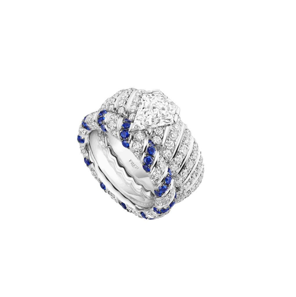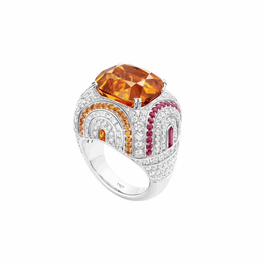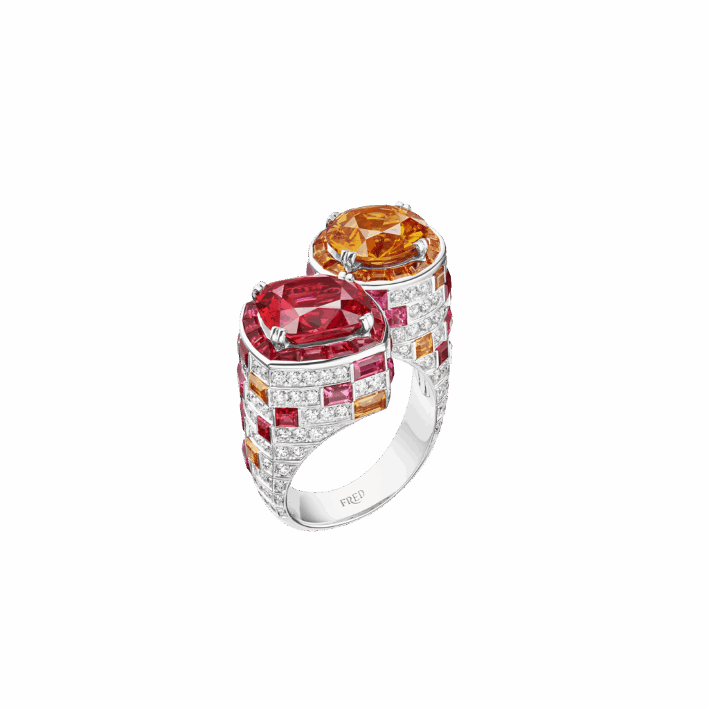 تمتزج الأحجار الكريمة النادرة—الأوبال الأسترالي، الإسبينل التنزاني، الزمرد الكولومبي، الياقوت السريلانكي—مع براعة الحرفية الفرنسية، لتخلق قطعاً فريدة تجمع بين الجرأة والرقّة، تعكس فلسفة FRED في الاحتفاء بالحياة والضوء.