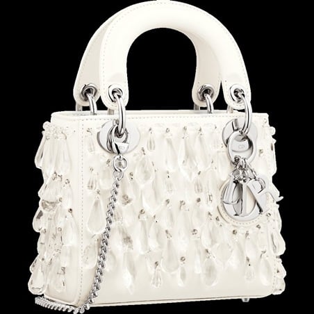 في مجموعة كروز 2026، قدّمت الدار إصدارًا مصغّرًا من الحقيبة الأيقونية بالجلد الأبيض الناصع، مزيّنًا بتفاصيل القطرات الشفافة التي تضيف إليها لمسة من النقاء والرقي. ليس هذا التصميم مجرّد قطعة فاخرة، بل عمل فنيّ دقيق يتطلّب مهارة استثنائية في كل مرحلة من مراحل تنفيذه — من تقطيع المكوّنات وتجميعها، إلى تثبيت كل قطرة بشغف ودقة متناهية.
