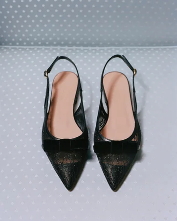 الأحذية صممت لتكون عملية وجميلة في الوقت نفسه، مصاحبة خطواتك في الدوائر الهادئة أو لحظات البريق الفجائية. وتمزج العلامة بين الخطوط الهندسية المميزة ولمسات أنثوية ناعمة، مع كعوب عالية خفيفة تمنحك إحساس الاحتفال في كل خطوة.