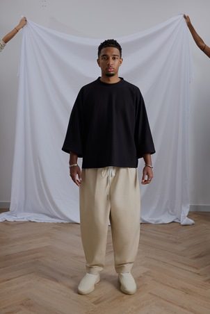 في صميم النهج التصميمي، تأتي البساطة كخيار واعٍ لا تفريط فيه. تُضبط العناصر بما يخدم الراحة والعملية، مع خطوط نظيفة، وخياطات غير بارزة، ونِسب مريحة تشكّل قاعدة كل مجموعة. وتظهر التأثيرات اليابانية في قصّات مستوحاة من الكيمونو في التيشيرتات والقطع الخارجية، إلى جانب سراويل واسعة تمنح حرية الحركة وانسيابية الارتداء. التركيز هنا لا ينصبّ على الشعارات أو الزخارف، بل على انسجام القطعة مع الجسد، وسلاسة حركتها، وقدرتها على الحفاظ على جودتها مع مرور الوقت.