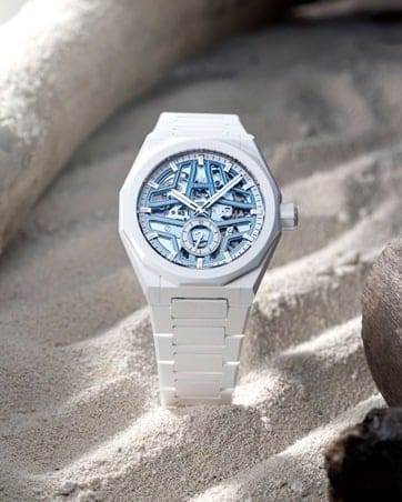 بعد نجاح إصداري Night Surfer في 2021 و2023، يعود التعاون الثالث والأخير بين Zenith وTime+Tide ليكشف عن تحفة جديدة ضمن “ثلاثية Surfer”. الإصدار المحدود الجديد يأتي بعلبة من السيراميك الأبيض بقطر 41 مم، خفيف الوزن، مقاوم للخدش، ومثالي للمغامرات الشاطئية بفضل مقاومته للماء حتى عمق 100 متر.